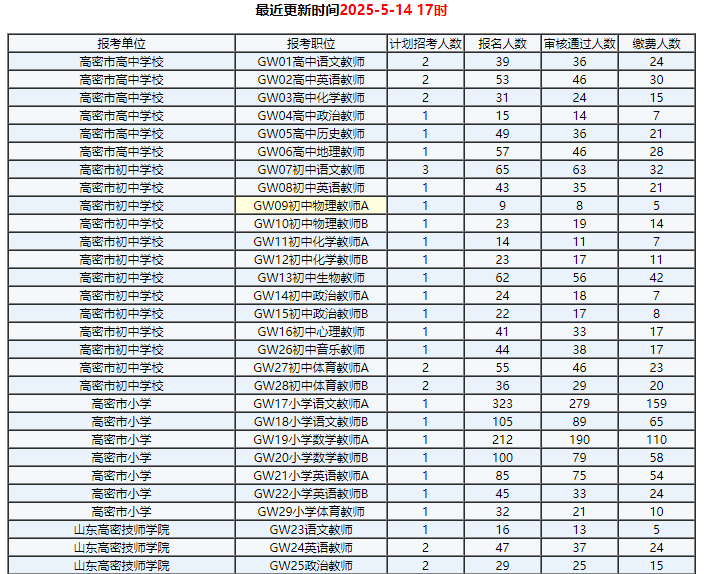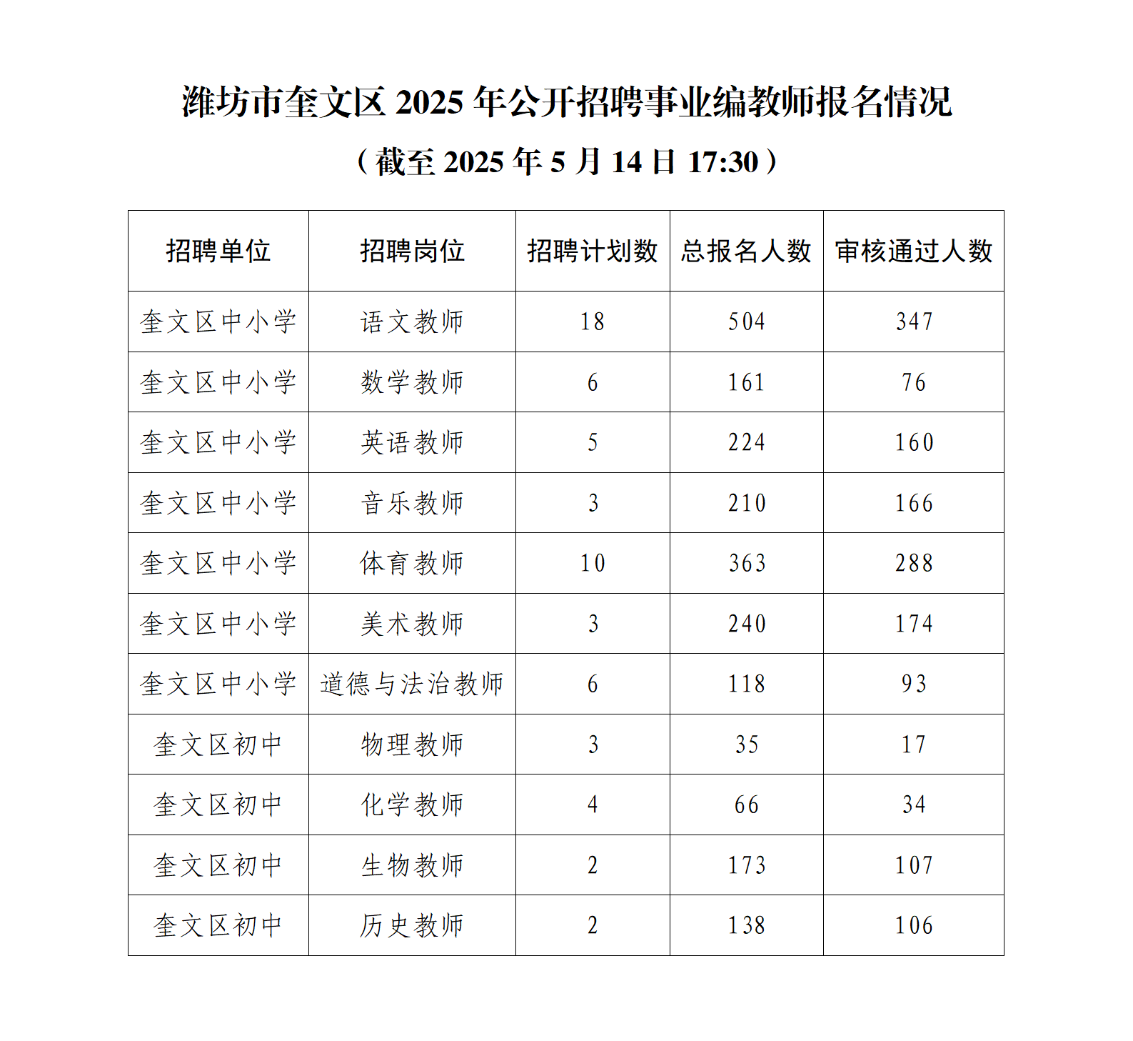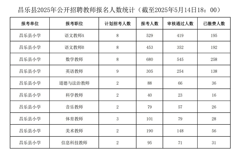 潍坊临朐县、奎文区、高密市、青州市、安丘市、昌乐县2025年公开招聘教师报名人数统计