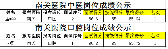 潍坊市潍城区医院面试成绩公示