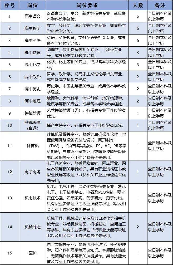 为加强教师队伍建设,满足教育教学工作需要,按照“公开、平等、竞争、择优”的原则,现将2025年诸城市超然综合高级中学公开招聘工作人员有关事项公告如下: