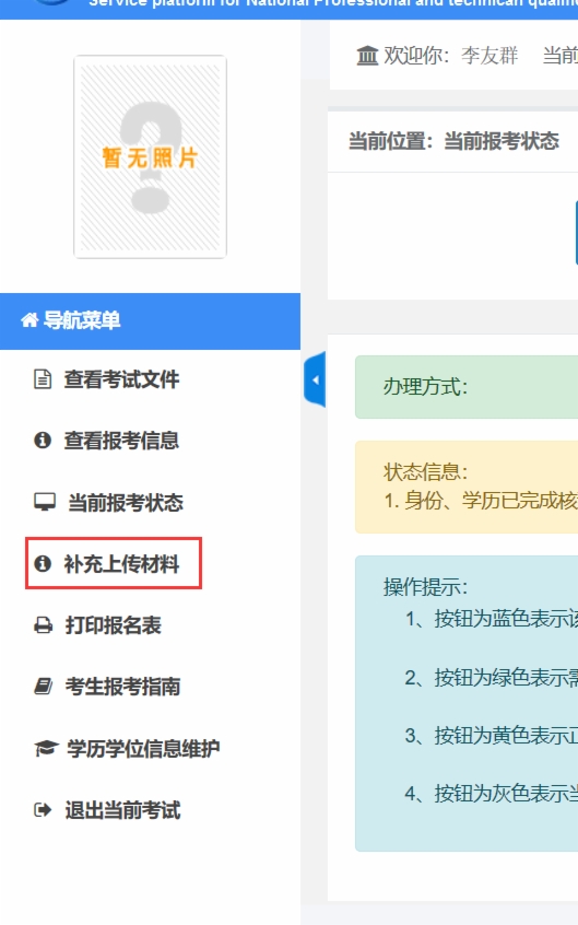 上传补充材料人员范围:报名时,“民族语言文字出版”字段选择“是”且报名缴费成功的报考人员。