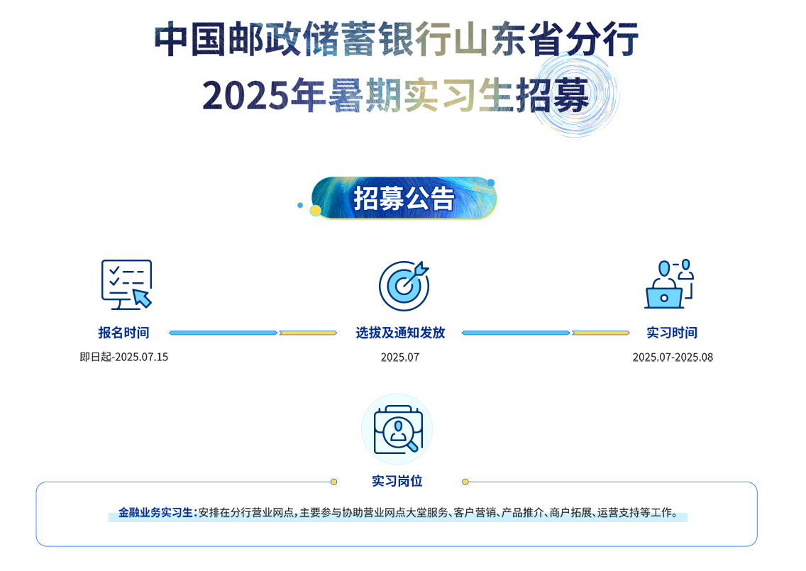 原标题:中国邮政储蓄银行山东省分行2026年暑期实习生招募公告