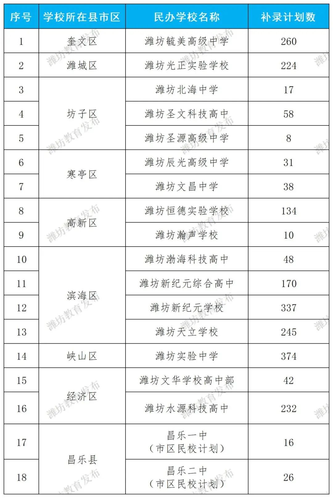 潍坊市区民办普通高中补录批次志愿计划公布啦!