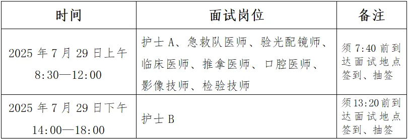 面试时间:2025年7月29日(周二),分上午、下午两场,上午8:30—12:00,下午14:00—18:00;