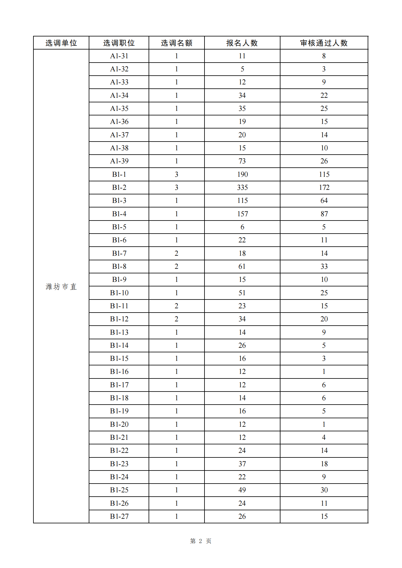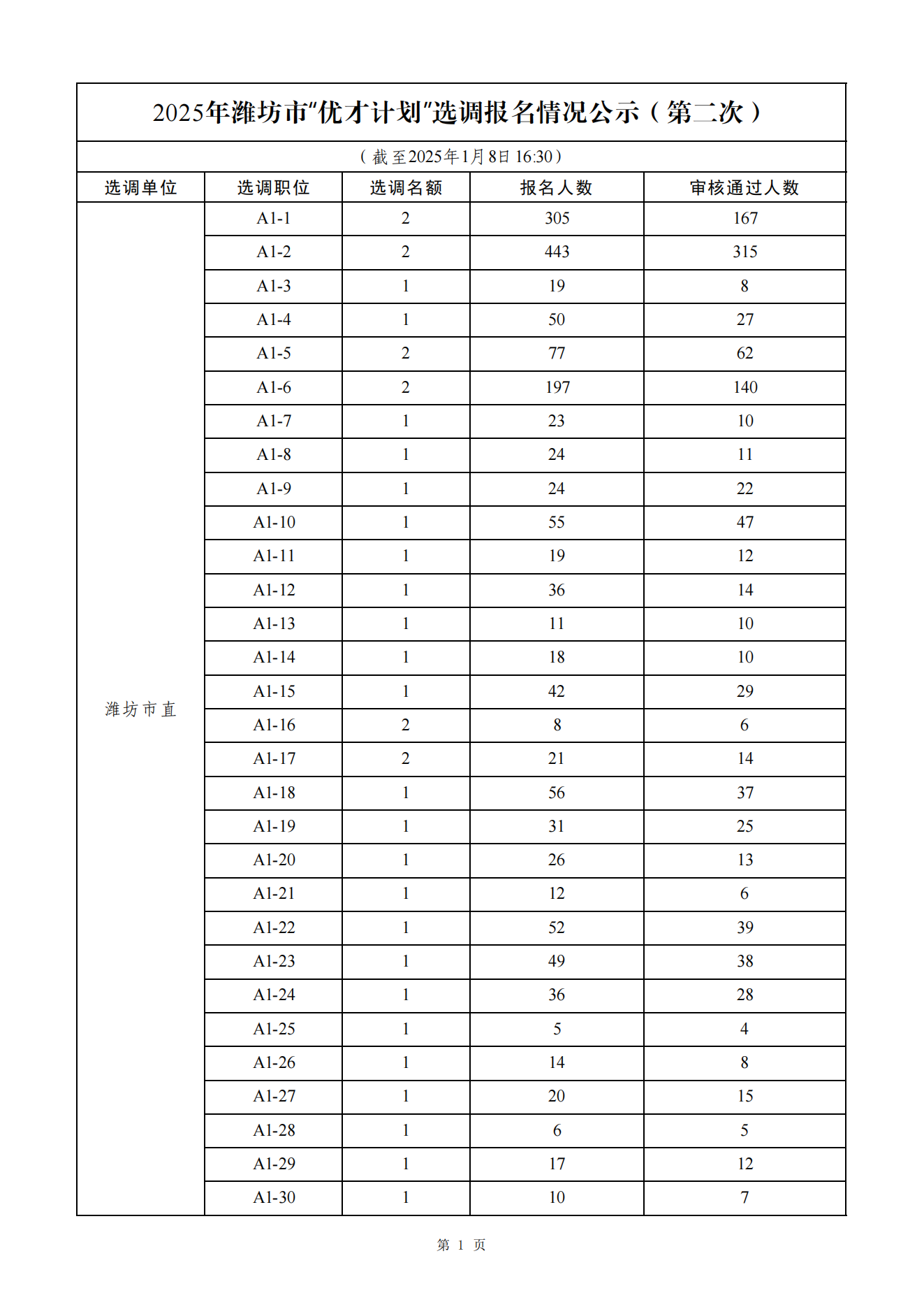 2025年潍坊市“优才计划”选调报名情况公示 (第二次)