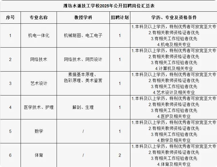 原标题:潍坊水源技工学校2025年教师招聘公告