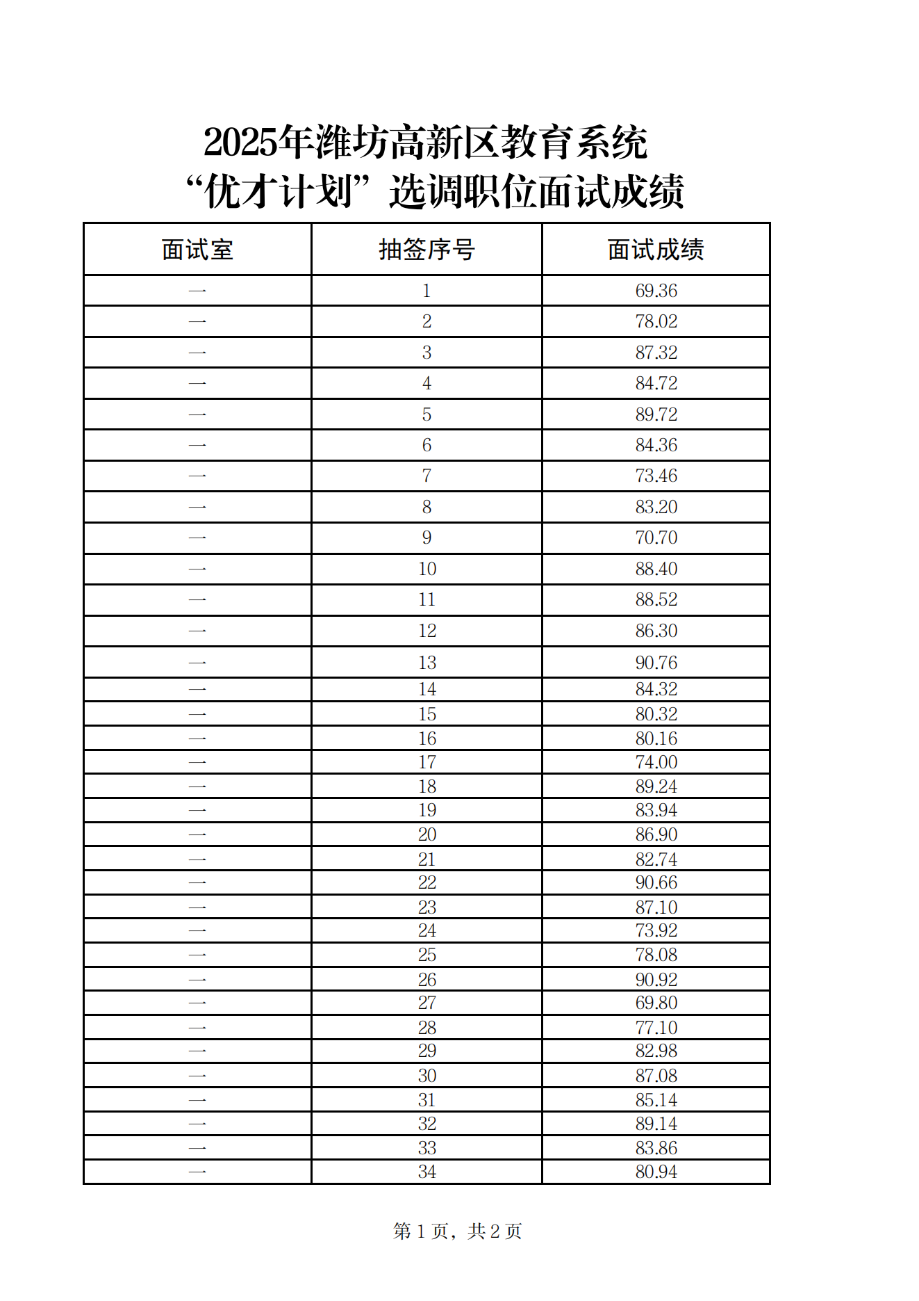 原标题:2025年潍坊高新区教育系统“优才计划”选调职位面试成绩