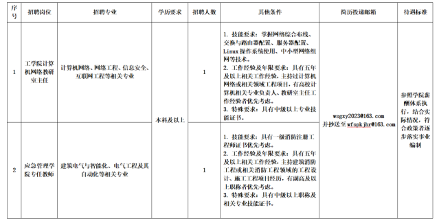 八、薪酬待遇1.有竞争力的薪资待遇:享受学院教学科研(固定工资)+产教融合(项目盈收)双薪制。固定收入6000-10000元/月,产教融合收入与项目盈收挂钩;2.健全的福利体系:为教职工缴纳社会保险和住房公积金,享有带薪寒暑假及国家法定节假日、就餐补贴、通讯补贴、交通补贴、健康体检、妇女节、教师节、中秋节、春节等节日福利,已开通潍坊市区至我校班车,长驻学校人员提供教职工公寓;3.事业编制支持:安丘市政府给予学院一线教师全额事业编制支持,依据相关政策,给予解决事业编制;4.政府补贴政策:依据当地政策,符合安丘市政府人才补贴条件的人员,协助其申请生活补贴及购房补贴。购房补贴(10-30万不等,一次性发放),生活补贴(2000-2400元/月不等,补贴3-5年);5.其他:教职工子女就读集团内学校享受学费减免或优惠等多项政策;6.具有博士学位、副高级及以上职称、首席技师、技术技能大师、技术能手、行业企业首席技师、省技术技能大师、省技术能手、鲁班首席工匠、齐鲁大工匠、齐鲁工匠、非遗传承人等高层次人才,可一人一议,特事特议,按照从优原则落实薪资待遇。