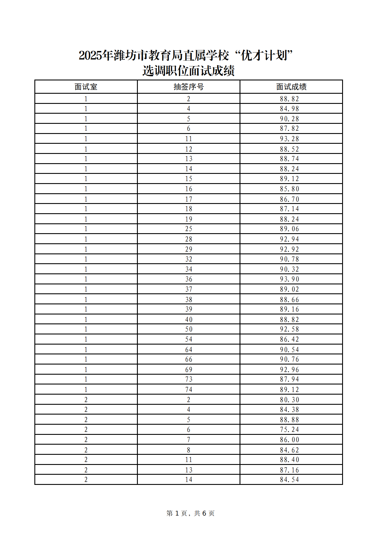 2025年潍坊市教育局直属学校“优才计划”选调职位面试成绩公示