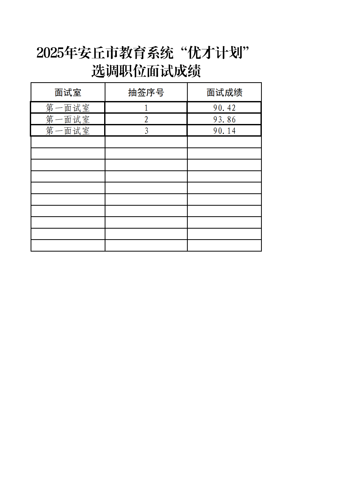 2025年潍坊市安丘市教育系统“优才计划”选调职位面试成绩公示