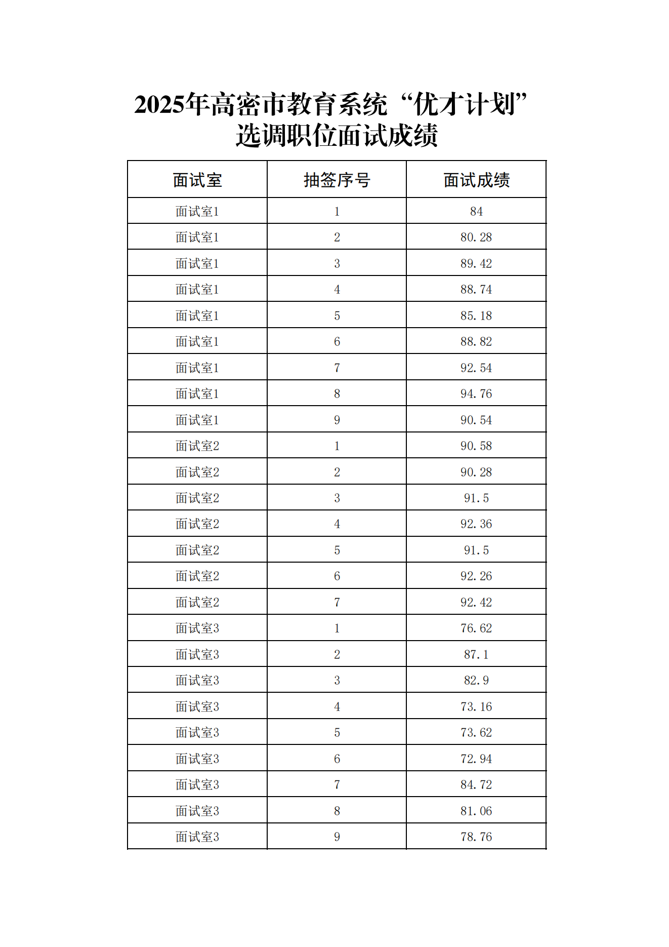 2025年潍坊市高密市教育系统“优才计划”选调职位面试成绩公示