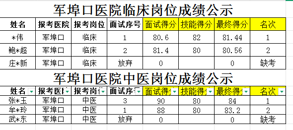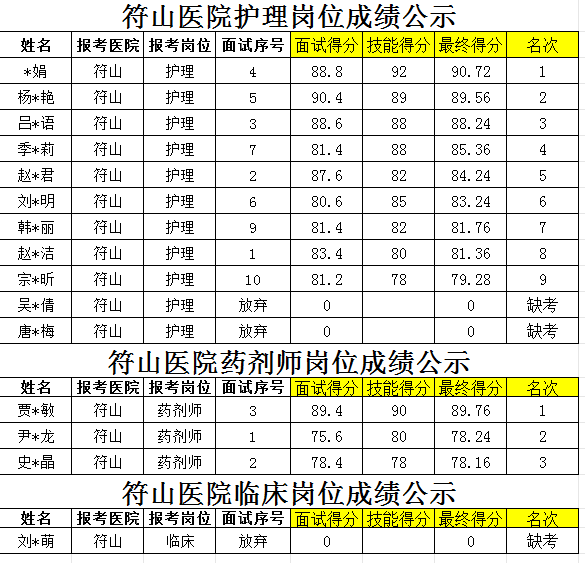 潍坊市潍城区医院面试成绩公示